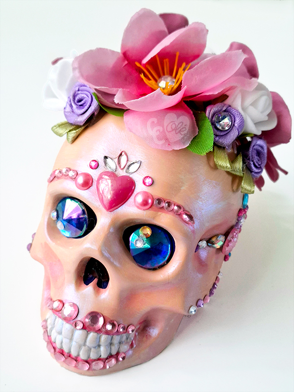 De Diamond Skull richt zich op glamoureuze details zoals glitters en bloemen.