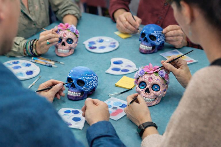 De combinatie van schilderen en versieren maakt deze workshop dynamisch en toegankelijk. Van subtiel en verfijnd tot stoer en minimalistisch. Geschikt voor vriendengroepen, bedrijfsuitjes, Halloween en Dia de los muertos events.